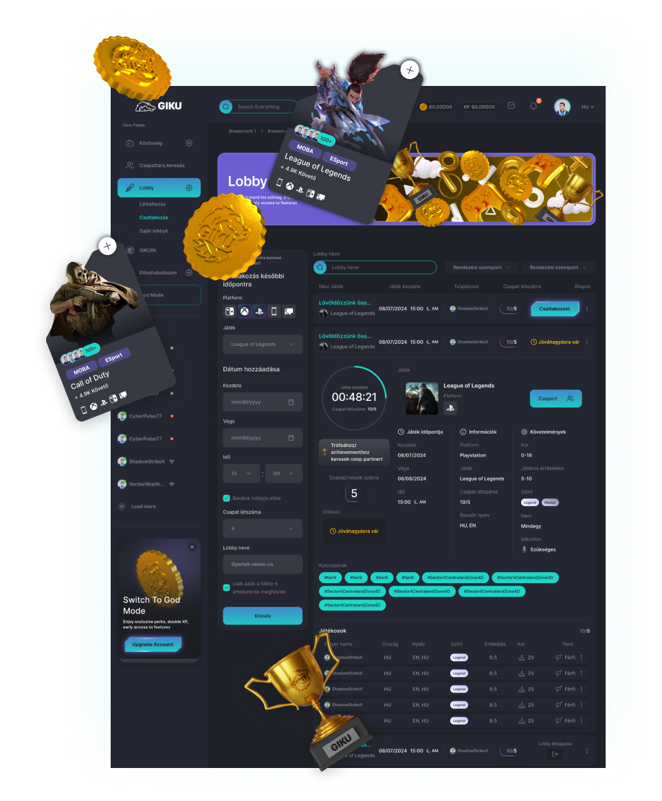 We’ve built the GIKU teammate finder in a uniquely powerful way: set your own criteria, use game-related keywords, and link your other gaming profiles to reliably find the best-matching teammates—on every platform.